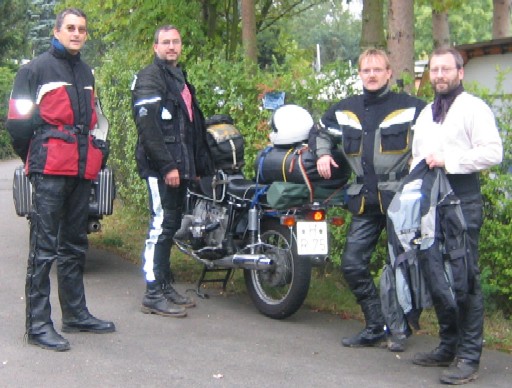 Vorbereitung eines BMW-Kneeler-Gespannes (Kneeler sind die niedrig gebauten Gespanne, auf denen der Fahrer kniet).