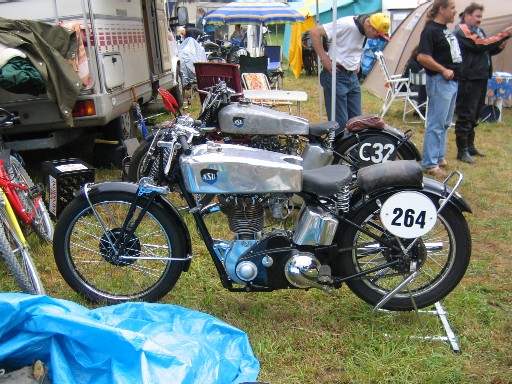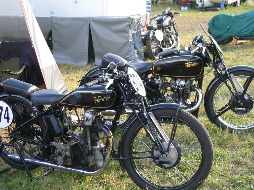 Zur Einstimmung bietet sich ein Besuch des Fahrerlagers an. Hier finden sich wunderschöne Motorräder wie diese Velocettes und NSU.
