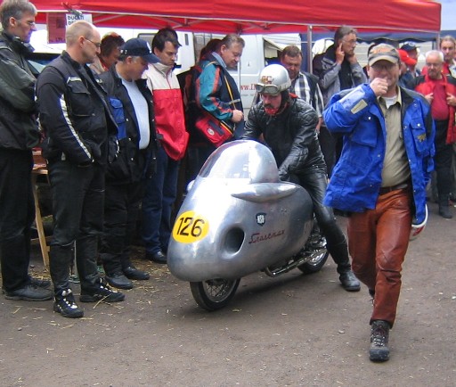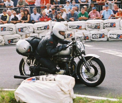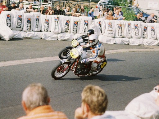Das wärs: berühmte alte Motorräder auf einer Rennstrecke, wie es sie früher gab, auf ganz normalen Straßen, an Vorgärten vorbei, die Einfahrt mit einem Strohballen gesichert. Dafür pilgern viele auf die Isle of Man, aber das gibt es auch in Deutschland, ein bischen kleiner. In Schotten am Vogelsberg wird im August an einem Wochenende die Bundesstraße gesperrt, weil sie als Rennstrecke gebraucht wird, für ein kleinen, feinen Stadtkurs.