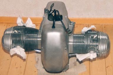 So sieht der Motor aus, wenn er glasperlgestrahlt ist.